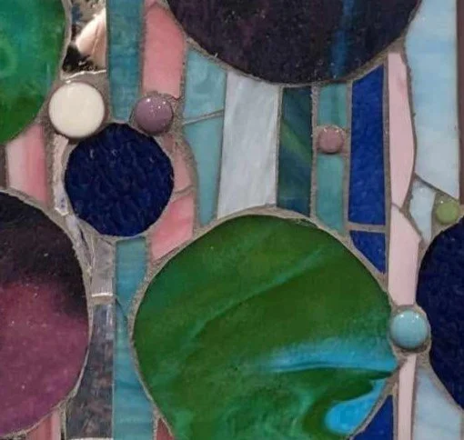 Allie Thompson: Art By Allie Janae - WEBSITE - Artbyalliejanae.shop@gmail.com - I create bold, colorful stained glass based off of things I enjoy in life. Such as croissants, turtles, and the phases of the sky