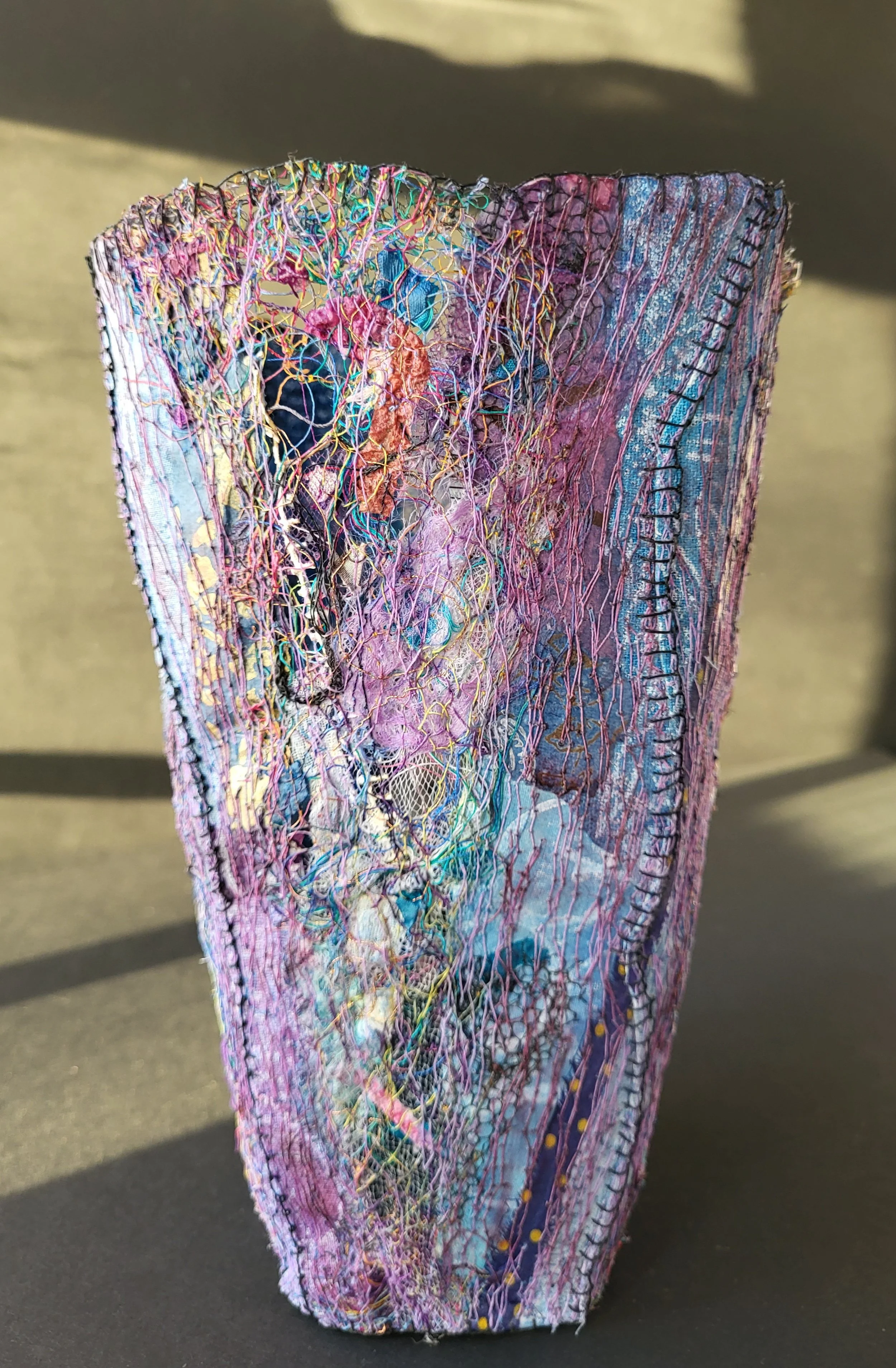 Gaye Grant: Textile/Fiber/Mixed Media - gayeg98@gmail.com - Gaye spent some formative years in New Mexico, doing theater, music and art before moving back to her Midwestern roots over a decade ago. She credits the "Land of Enchantment" for influencing the colors, textures and layers of her textile art.